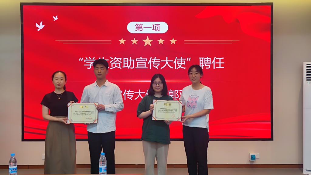 聘任仪式上,公司团委书记贾雪和资助专干景一佳分别为20国商01班郭亚星和20营销01班刘梦凡颁发了“员工资助宣传大使”聘书。随后,两位资助宣传大使开始了资助政策宣讲活动。