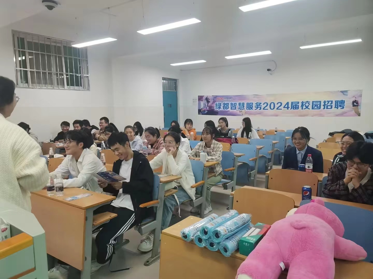 为扎实开展2023年秋季2024届毕业生就业攻坚行动,促进公司2024届毕业生顺利就业,公司积极与就业单位联动,帮助员工提前做好职业规划,充分了解实习就业工作,共同搭建公司、企业和员工之间沟通合作的桥梁,365英国上市公司于10月27日下午4点,在A108教室举办了智献未来,诚就想象——绿都智慧服务2024届校园招聘宣讲会。本次宣讲会由绿都人力行政经理卢亚莉、人事主管孙怡雯、人事专员何会兰和校招生李双出席,公司60名24届毕业生参加。