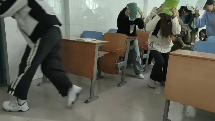 本次活动还开展了地震应急疏散演练,班长认真组织,指挥到位,同学们积极配合,服从命令。在地震第一时间,同学们迅速低头弯腰、双手护头躲在安全的位置就地避震,按照预定路线有序疏散,快速从楼梯撤离到空旷的地方,没有发生推挤或踩踏事故,整个演练过程井然有序。演练的成功提高了领导者实际应对和处理突发事件的能力,进一步增强了同学们防震减灾的安全意识,掌握迅速逃生的基本方法。
