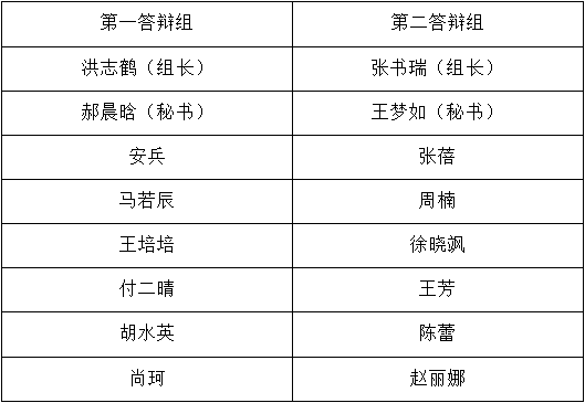 3.分组:此次答辩共设2个答辩组,分组情况安排如下: