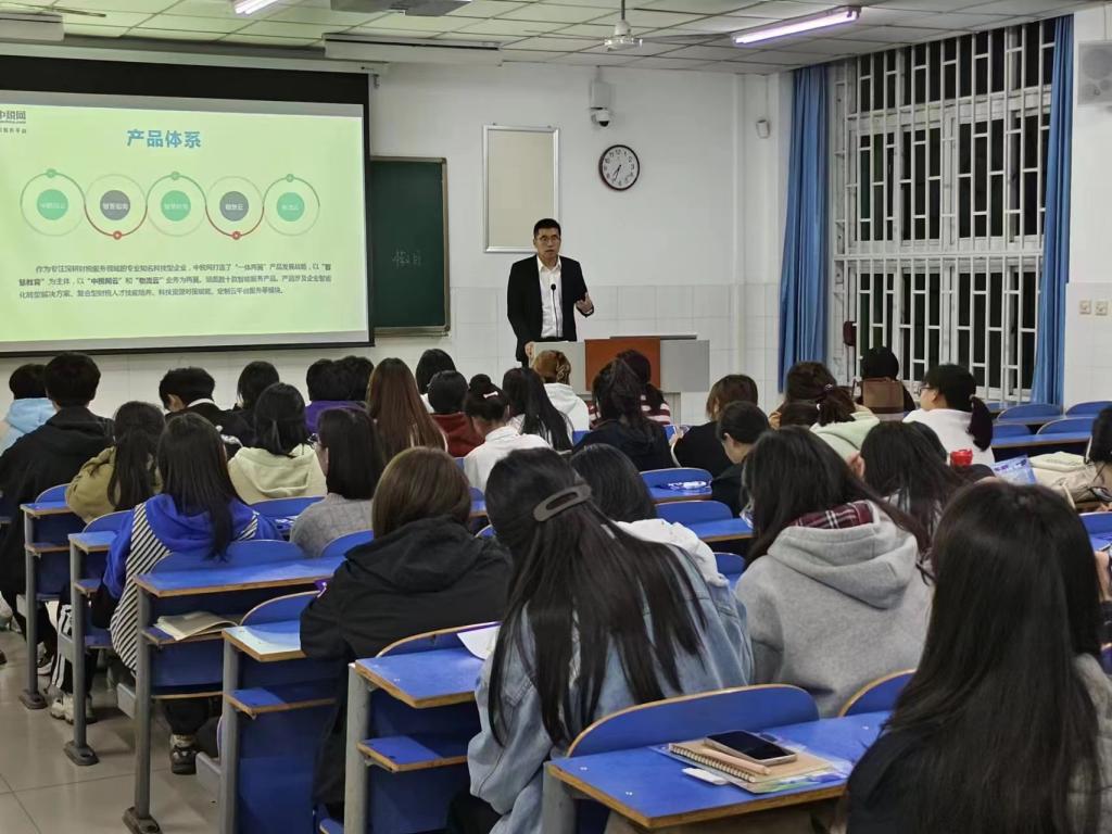 为加强公司与企业之间的友好交流与合作,全面做好2024届毕业生就业服务工作,给毕业的学子们提供一个近距离了解企业的机会。11月7日晚上7点,365英国上市公司在英才校区E107举办中税网(北京)智能科技有限公司河南分公司宣讲会。企业负责人杨雪经理等一行六人前来宣讲,公司约60名毕业生参加。