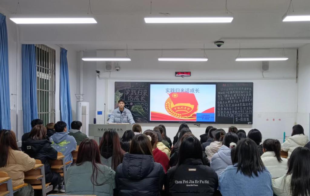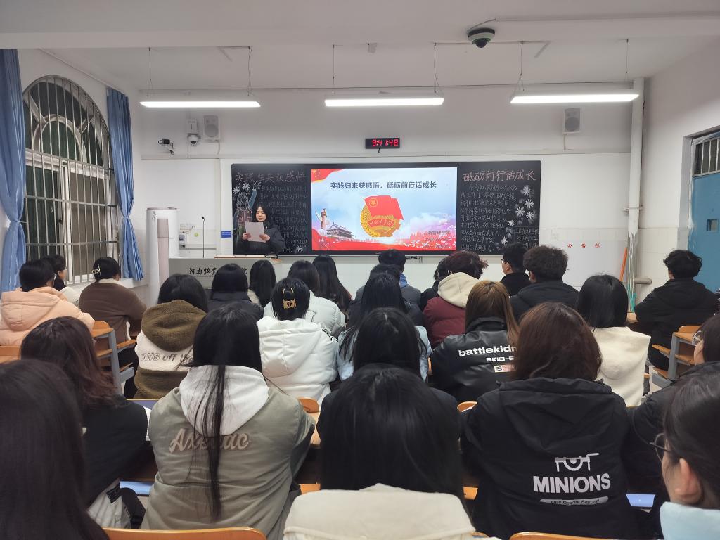 团课伊始,各班团支书组织同学们观看公司员工投身社会实践的视频,选取优秀案例,通过开展实践专题报告会总结有效经验帮助同学们认识到自身的不足,强调要更加注重细节,保持积极态度。接着,各班团支书组织同学们就自己亲身经历的社会实践展开激烈的讨论,积极上台分享自己的实践心得和体验,大家纷纷表示要积极参与社会实践活动,将理论与实践相结合,为社会发展贡献青春力量。最后,各班团支书对本次团课进行总结,激励同学们将课堂中学到的知识内化为青年信仰,外化为青年行为,并通过实践拓宽视野,增长见识,锻炼意志,树立服务社会的思想。