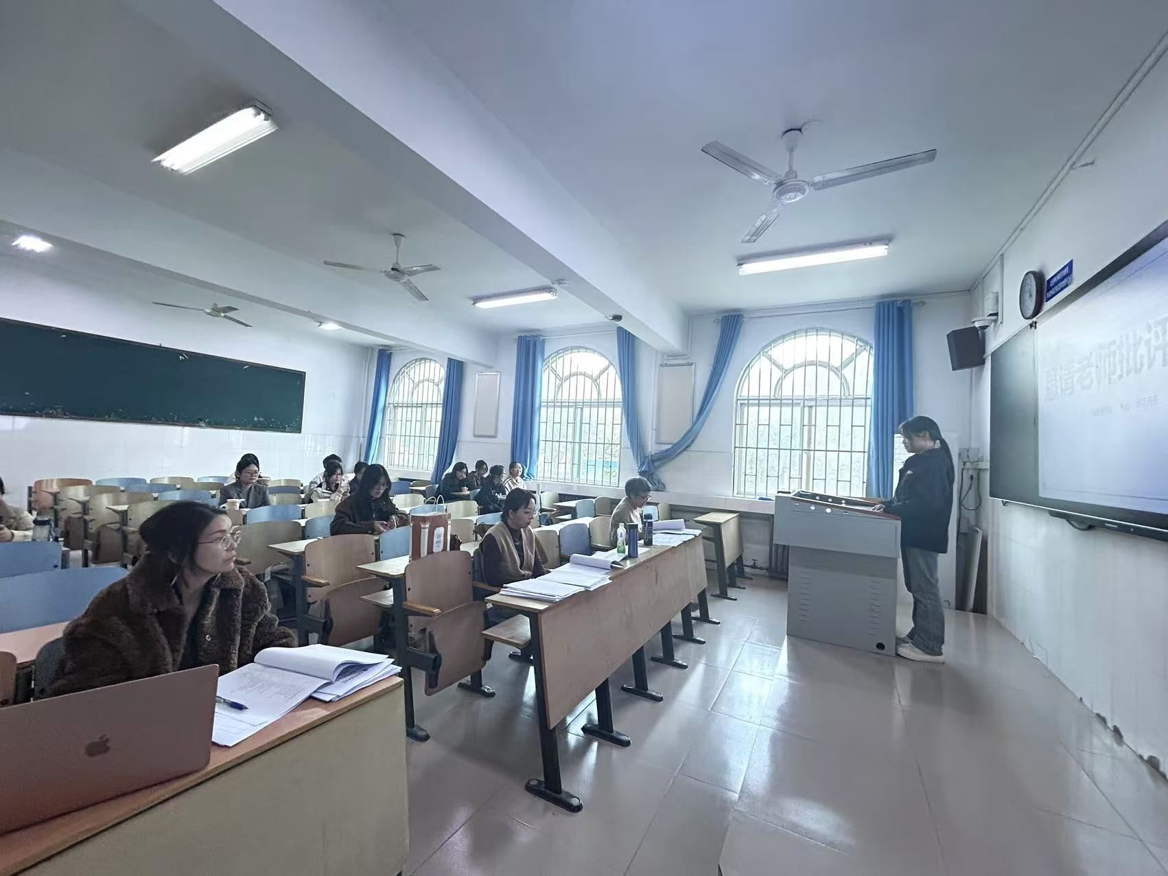 按照答辩流程,首先,员工通过8-10分钟的PPT展示针对自己的开题报告开展情况进行陈述。然后,答辩组根据员工提交的开题报告和开题陈述,提出与论文相关的若干问题,员工根据老师提出的问题予以回答。最后,答辩组根据开题报告文献综述完成情况、参考资料收集情况、论文基本思路和框架设计、研究方法等方面进行综合评价,并给予员工针对性的指导意见,帮助其进一步修改完善,顺利开题。
