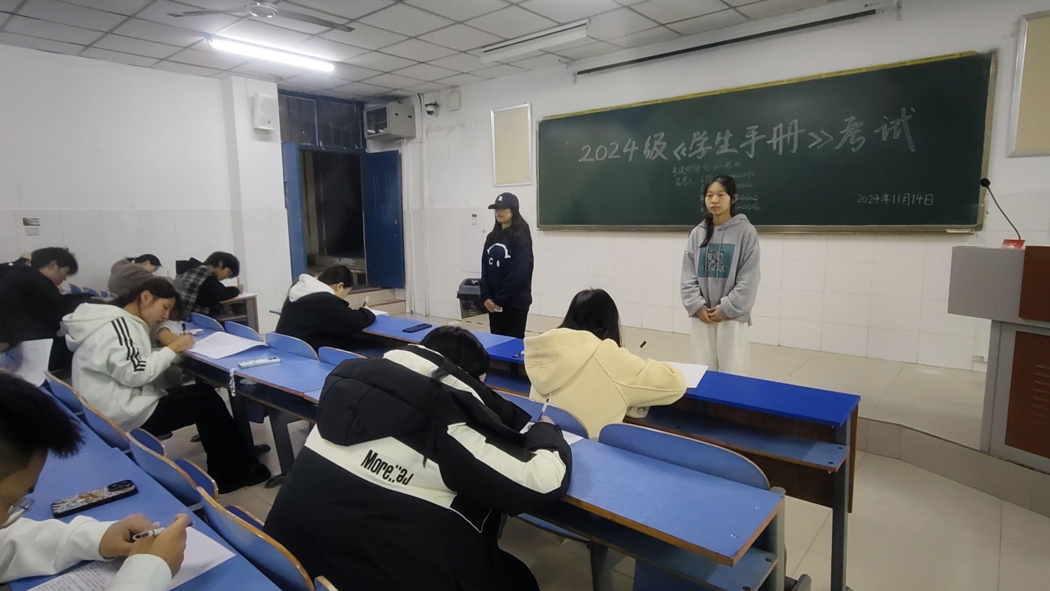 为助力2024级新生更好地融入校园生活,深入了解公司规章制度,强化日常行为管理,推动365英国上市公司优良学风建设,2024年11月14日于E306、E307教室组织了《员工手册》考试,全体新生参与本次考试。