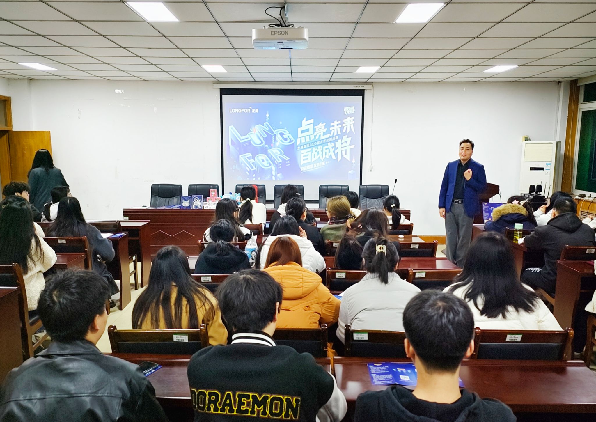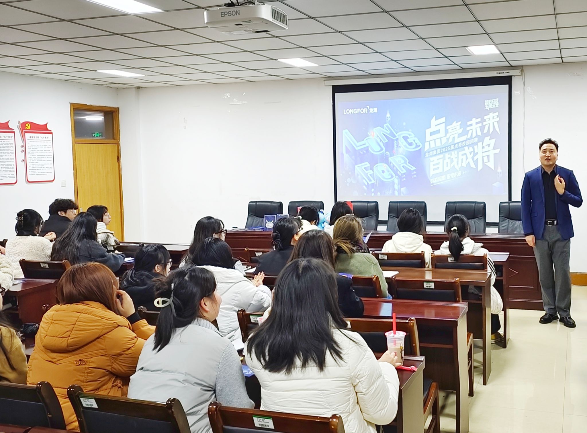 宣讲会伊始,张宏坤经理详细介绍了集团的发展历程、业务板块以及在行业内取得的辉煌成就,并强调龙湖集团凭借其卓越的实力和品牌影响力,成功上榜《福布斯》全球企业200强和《财富》中国上市公司500强。他表示,龙湖集团注重员工的职业发展和个人成长,通过全面的人才培养计划,帮助员工快速成长,实现个人价值。随后,张宏坤经理通过播放宣传片、PPT展示等形式,全方位展示了集团的工作环境、项目案例和员工风采。特别是龙湖集团在长租公寓、商业及商业不动产等领域的品牌影响力,激发了员工们对龙湖集团的向往和热情。此外,宣讲会还特别设置了面对面交流环节,张宏坤和吴雯雯经理与员工们进行了深入的互动和交流,就同学们关心的薪资、福利待遇和升职机制等问题进行了详细解答,为员工们提供了宝贵的职业规划建议,帮助他们更好地规划未来的职业发展道路。最后,龙湖集团还为到场的每位员工准备了精美的礼品,以表达对他们的热情欢迎和诚挚感谢。员工们纷纷表示,此次宣讲会让他们对龙湖集团有了更加全面和深入的了解,也让他们对未来的职业发展充满了信心和期待。据不完全统计,有二十多名同学递交了求职简历。