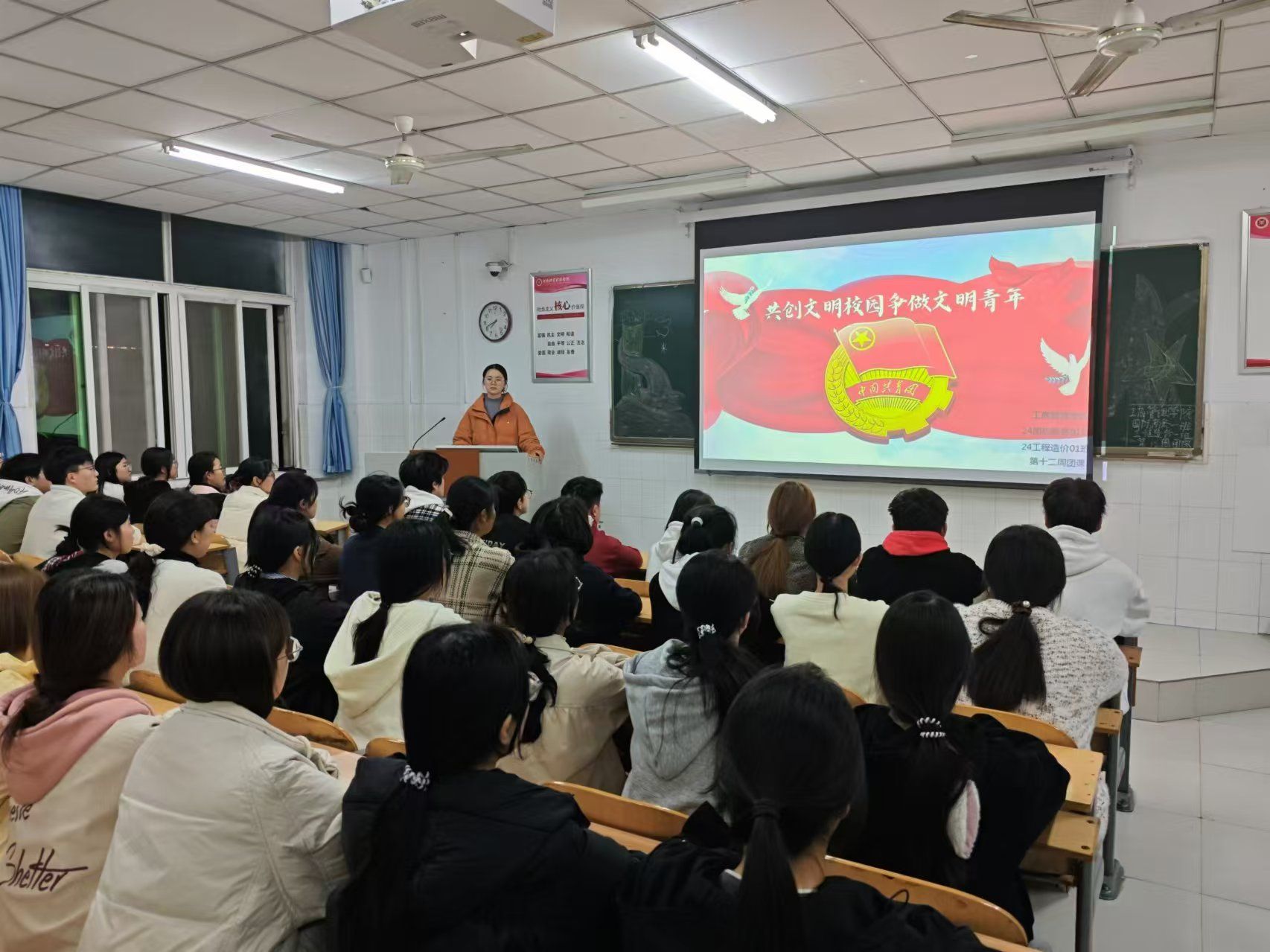 团课伊始,团支书们通过PPT展示、视频播放和文件解读等方式,向同学们详细阐述了“共创文明校园,争做文明青年”活动的背景、意义和目标。他们表示,作为新时代的青年,我们不仅要学好专业知识,更要注重品德修养,积极参与文明校园建设,为营造良好的校园文明氛围贡献自己的力量。接着,团课进入了互动环节。团支书组织同学们分组讨论了如何在日常生活中践行文明行为,大家纷纷发言,提出了许多切实可行的建议,并分享了自己在文明校园建设中的所见所闻和所感所想。同学们纷纷表示将积极参与校园志愿服务活动,如校园清洁、文明劝导等,用实际行动践行文明理念,为校园文明建设贡献自己的力量。最后,团支书对此次团课作出总结,他们充分肯定了同学们在文明校园建设中的积极表现,并鼓励大家继续发扬优良传统,争做文明青年,将所学所得应用到日常生活中,积极向身边的同学宣传文明理念,共同营造积极向上、健康和谐的校园文明氛围。