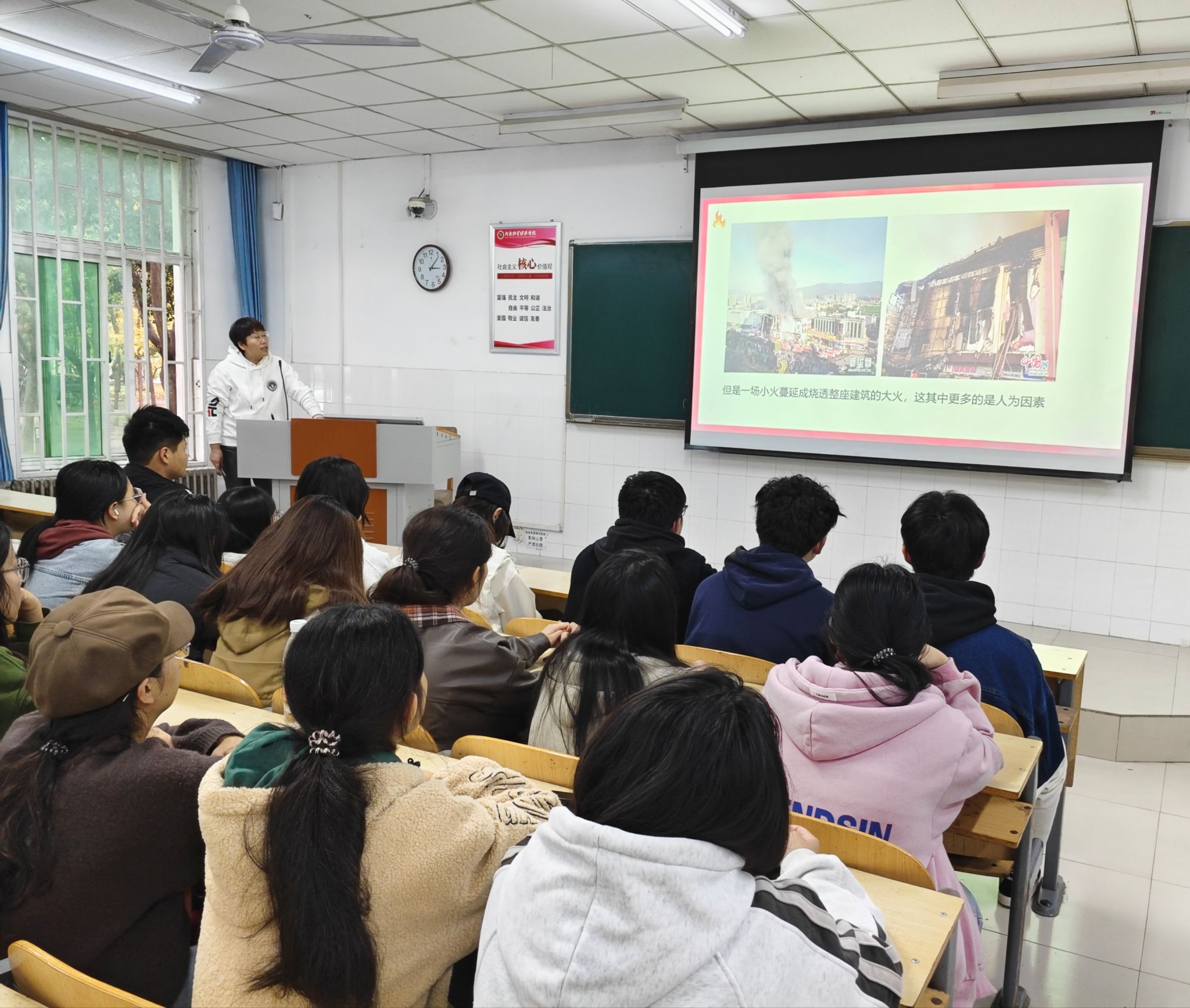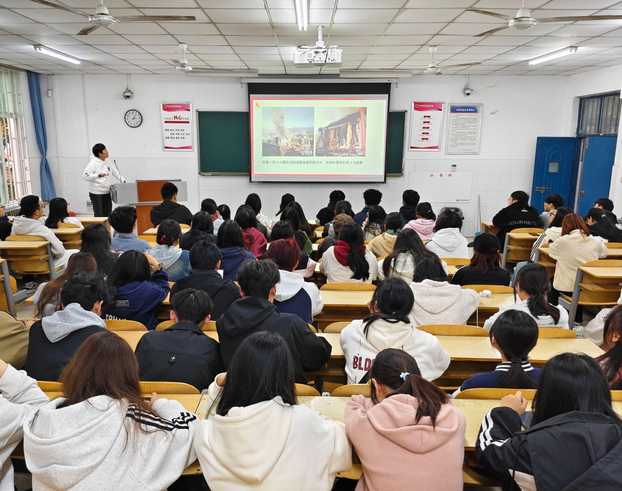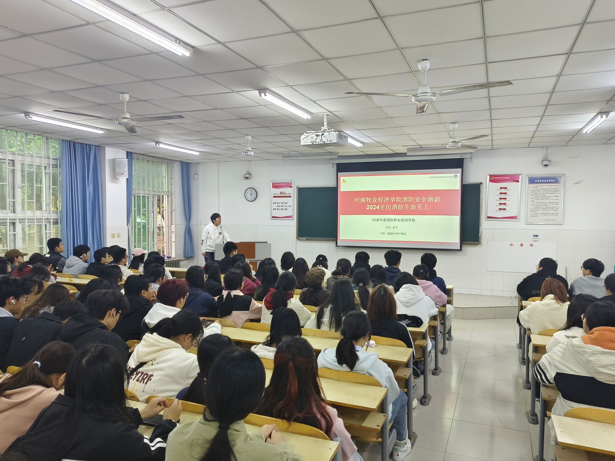为进一步贯彻落实2024年消防宣传月主题“全民消防,生命至上”,增强员工消防安全意识,提高突发事件的应变能力,有效预防火灾事故的发生,365英国上市公司于11月15日在W103教室开展以“隐患险于明火 防范胜于救灾”为主题的消防安全知识讲座。本次讲座特邀河南华泰消防职业培训公司讲师、国家一级注册消防工程师赵平老师主讲,公司一百余名同学参与。