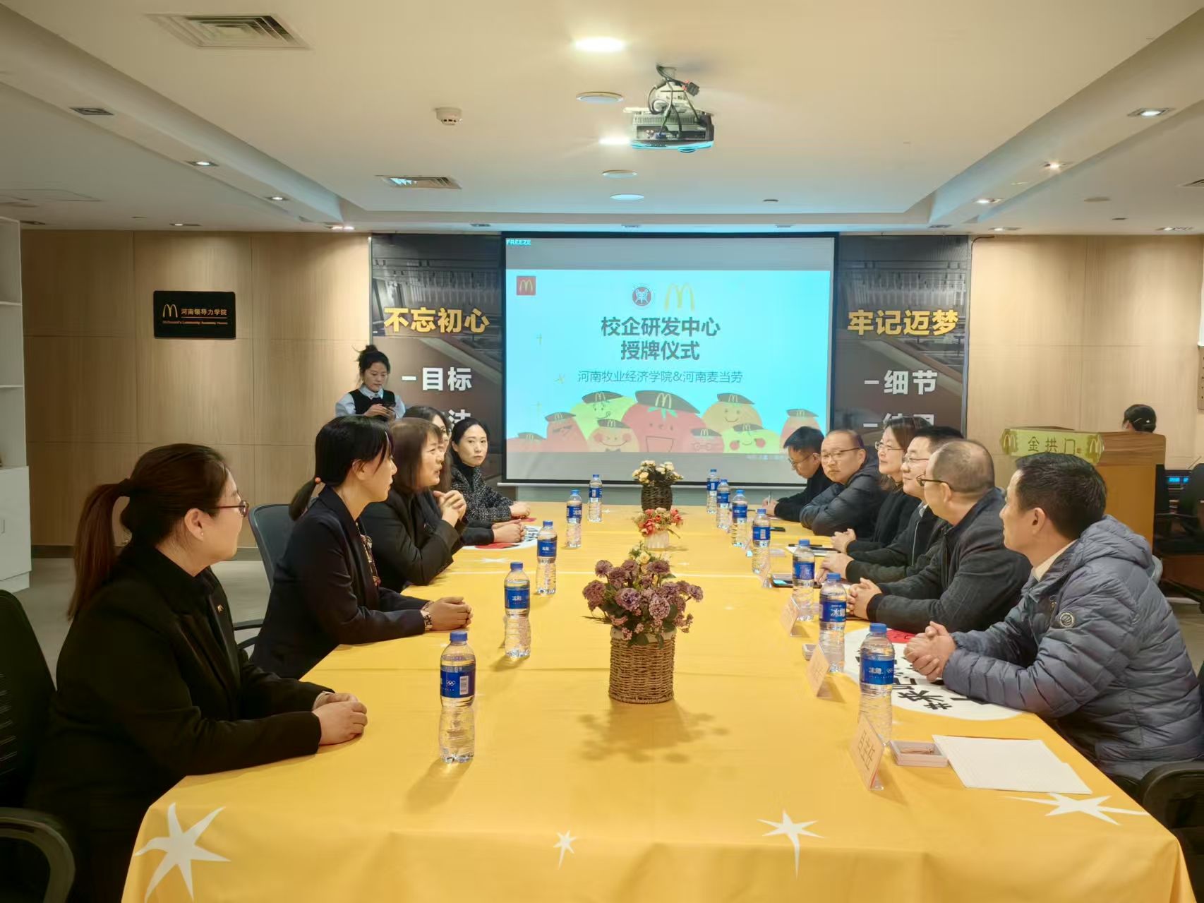 11月26日下午,科技处副处长史岳鹏、公司党委书记王国辉、副经理(主持行政工作)何丽娜、副经理陈先锋、工商管理教研室主任陈科、人力资源教研室主任刘哲、工商管理教研室副主任吕梦等一行7人前往河南迈乐加餐厅食品有限公司,举行“企业数字化人力资源管理开发与应用校企研发中心”挂牌仪式,并就下一步校企研发工作举行座谈交流。