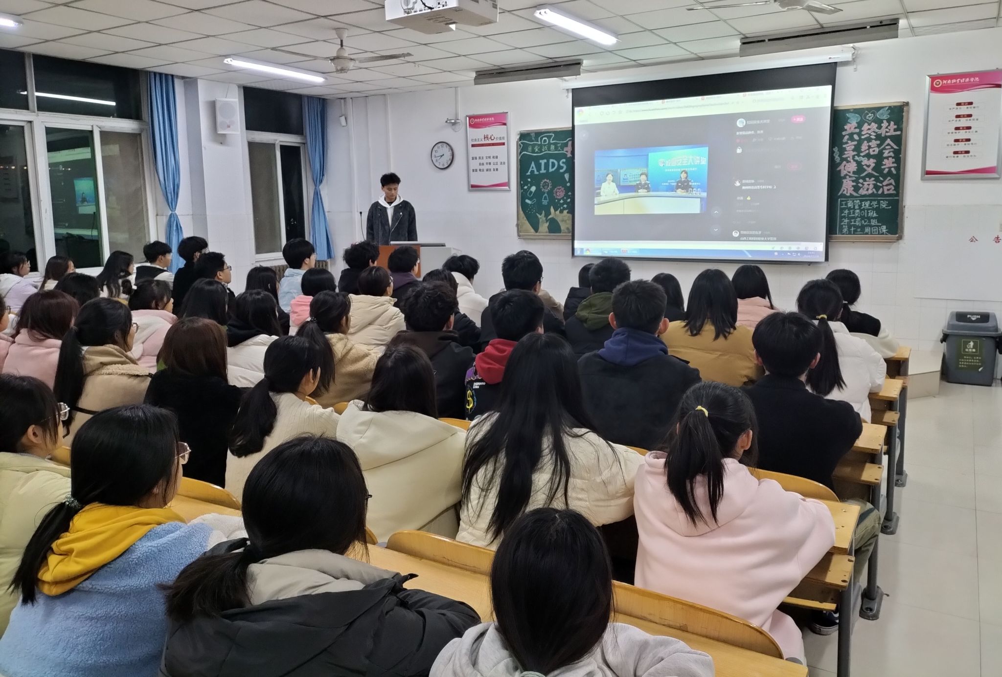 团课伊始,团支书通过播放关于艾滋病的科普视频、讲解相关案例、展示PPT等形式,向同学们直观展示了艾滋病的严峻形势与危害,并详细阐述了艾滋病的概念、传播途径以及有效的防护措施。接着,团支书带领同学们分组进行讨论,大家指出了因对艾滋病认知不足而可能引发的传播风险,进一步认识到普及正确防艾知识的重要性。同学们踊跃发言,分享身边的健康故事与感悟,并对如何在校园中有效开展艾滋病防治宣传工作提出了想法和建议。大家纷纷表示将以此次团课为契机,用实际行动践行“社会共治,终结艾滋,共享健康”的理念。最后,团支书对本次团课作出总结,号召同学们今后不仅要加强自我保护,更要积极投身艾滋病防治宣传工作,以实际行动消除社会对艾滋病患者的歧视,倡导健康生活方式。
