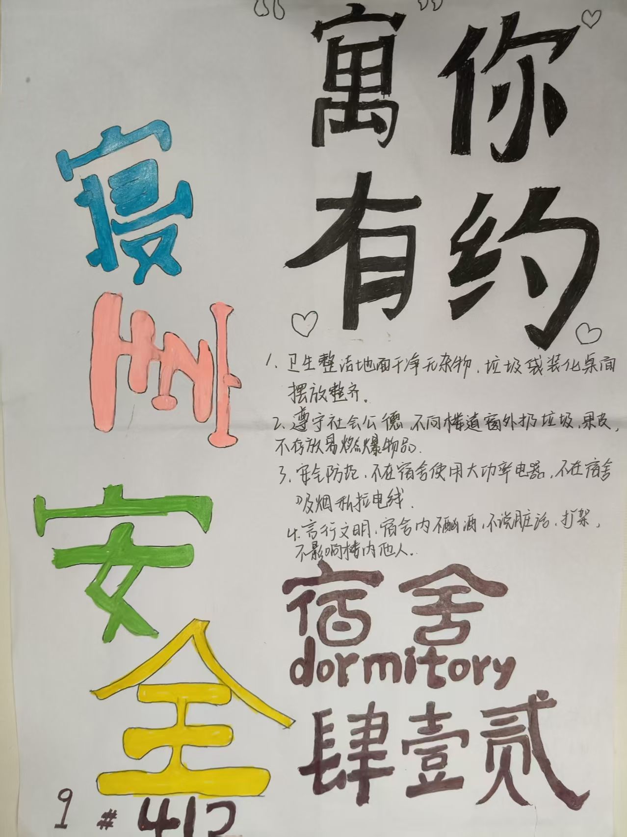 为深化宿舍文化建设,构建和谐安全文明的育人环境,2025年4月21日至24日,公司组织开展"共建温馨舍,同筑和谐约"宿舍公约制定活动。全院员工积极响应,以创意执笔、用共识立约,共同绘制宿舍文明新图景。