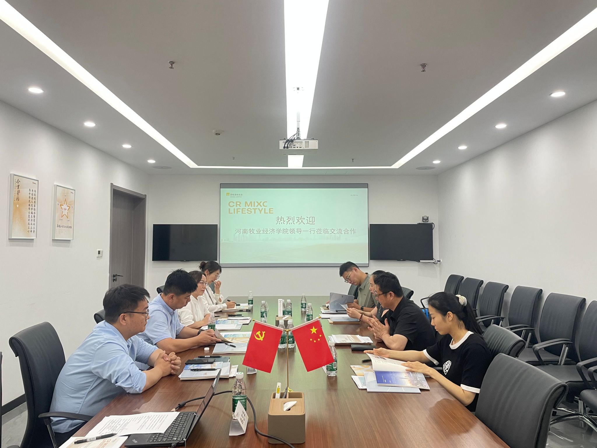 随后,双方前往郑州项目部进行了深入的务实交流。詹珅副书记详细介绍了公司在商科人才培养方面的特色优势和发展方向,并表达了与行业前沿需求精准对接、输送高素质人才的坚定意愿。刘总对公司的育人成果给予了高度评价,并详细阐述了华润万象生活在城市综合体运营、人才梯队建设方面的战略规划及人才需求。双方就“实习基地共建”“课程实践嵌入”“管培生校园招聘”等议题进行了深入的讨论,在协同育人、资源共享、就业拓展等方面达成了广泛共识和初步的合作意向,为未来实质性的合作勾勒出了明确的蓝图。