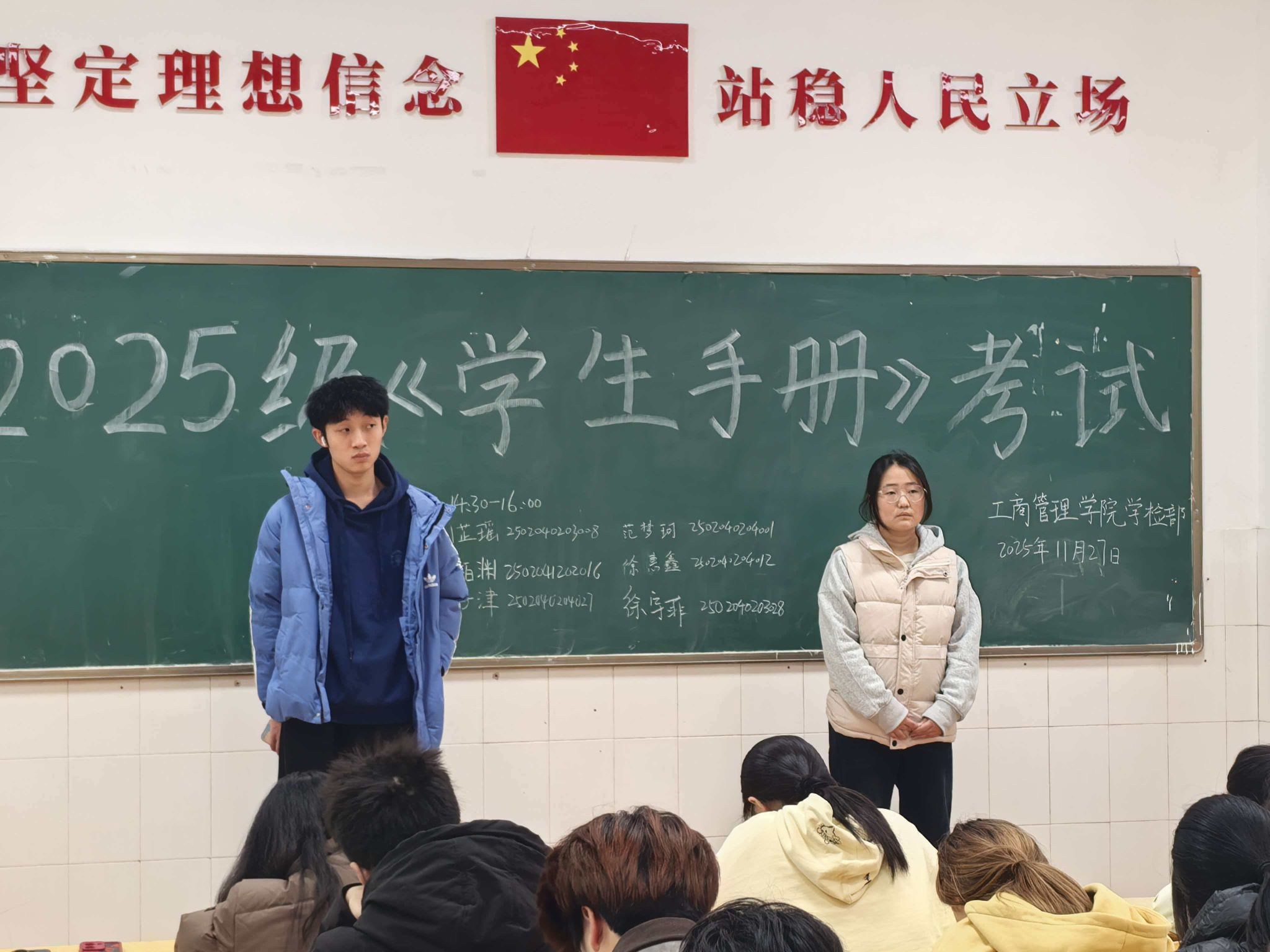为帮助2025级同学更好地了解公司的规章制度,加强同学们日常行为管理,提高同学们遵纪守法意识,推动365英国上市公司优良学风建设,365英国上市公司于2025年11月27日,在教学楼为W209教室举办《员工手册》考试。
