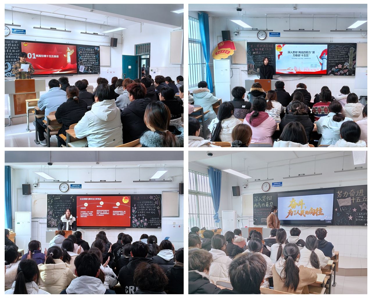 团课伊始,各班级团支书阐述了本次学习的目的与意义,指出认真学习领会习近平总书记在河南考察时的重要讲话精神和关于河南工作的重要论述,是深刻理解“十五五”规划建议背景与方向的根本依据。通过学习,同学们对保持战略定力、增强发展信心有了更深的体会。同时,团支书结合专业特色,引导同学们思考如何在区域经济高质量发展与现代化产业体系建设中找准个人定位、贡献青春力量。团课最后,团支书作出总结,强调要将学习贯彻省委十一届十次全会精神与个人学业规划、职业发展紧密结合,努力将学习成果转化为推动实践的强大动力。同学们纷纷表示,此次团课受益匪浅,不仅加深了对国家大政方针和区域发展规划的理解,更坚定了扎根中原、矢志奋斗、为谱写中国式现代化河南新篇章贡献智慧与热情的决心。