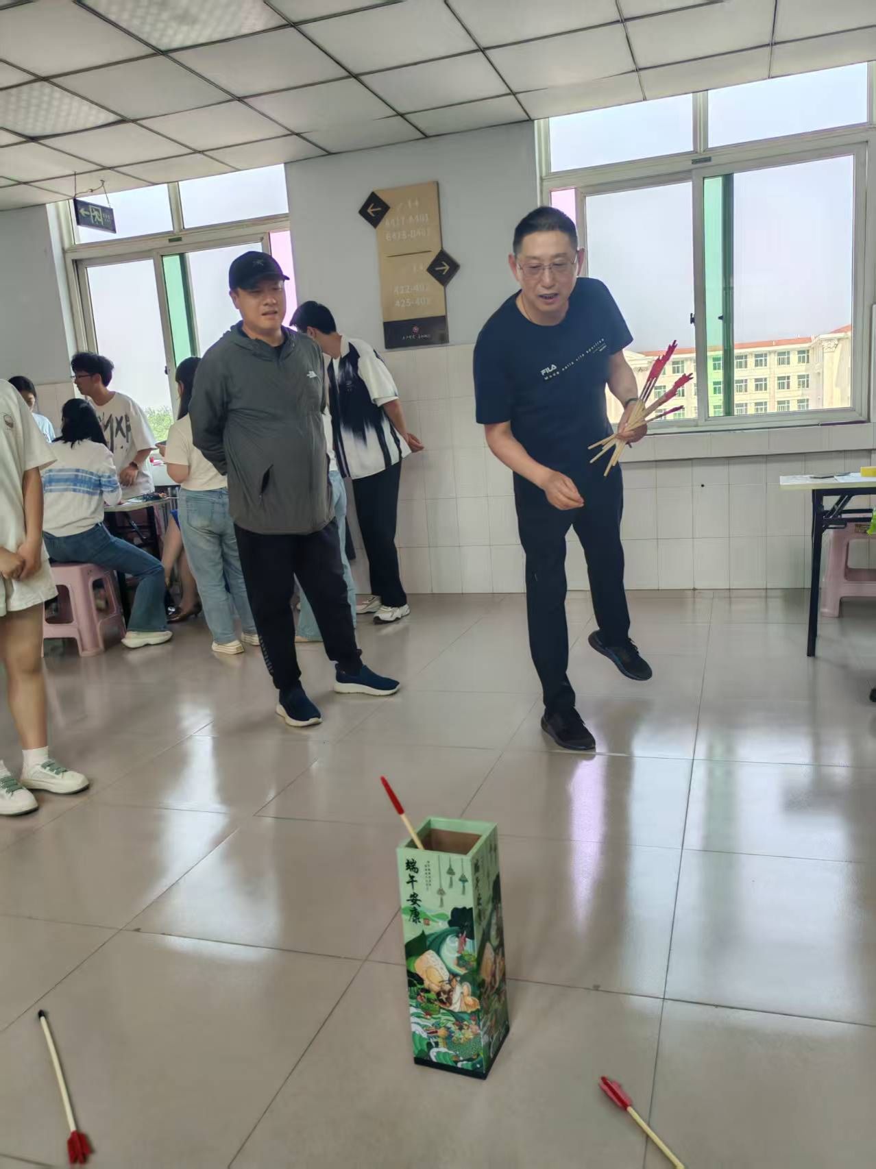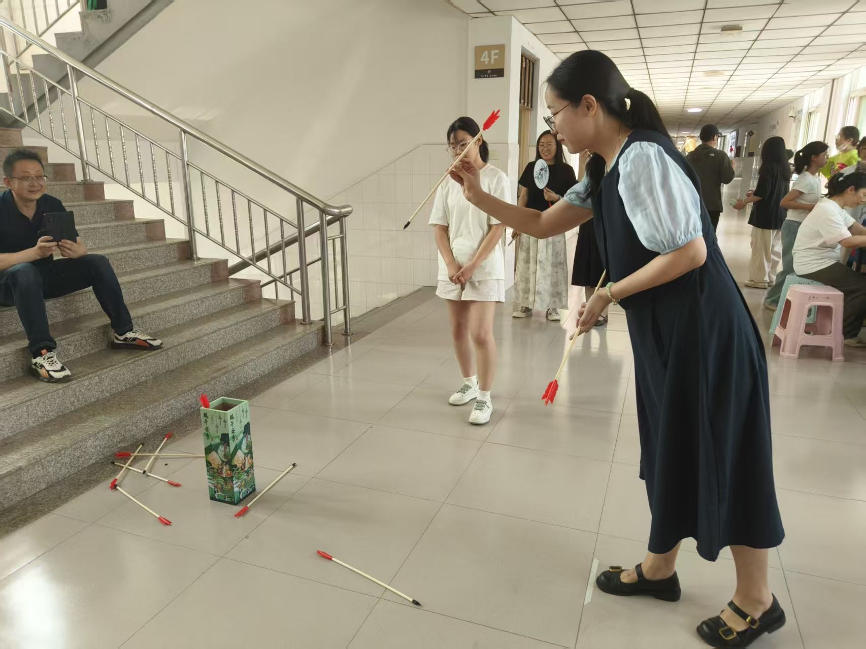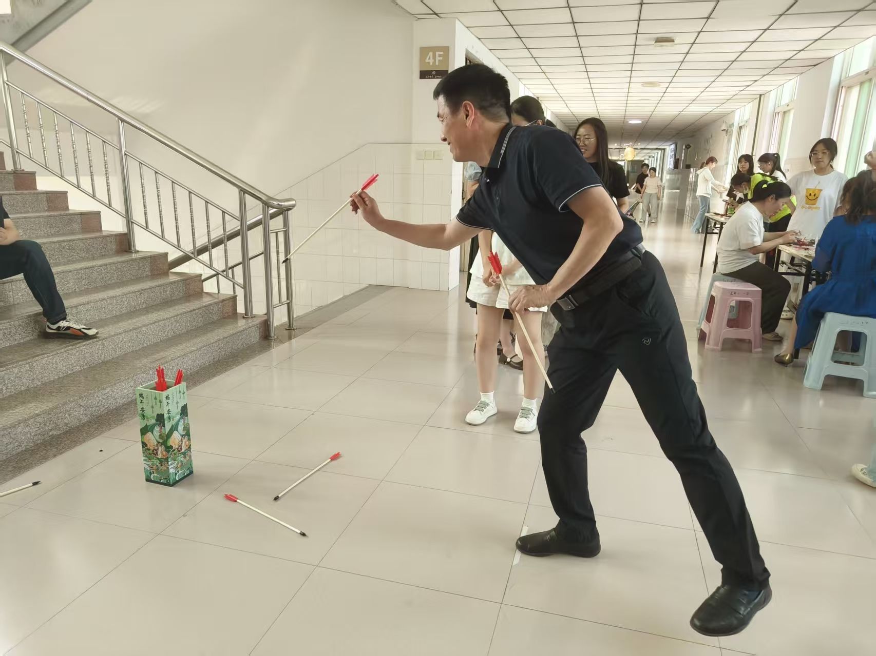 活动现场划分为“匠心”“雅趣”“竞合”三大体验区,60余名师生在协作中深化文化认同:匠心工坊:巧手赋新意。香囊制作区十味草药清香弥漫,教职工飞针走线缝制“安康福袋”。曹迪老师感慨:“一针一线不仅是手艺,更是将‘祈福避疫’的古人智慧传递给下一代。”香扇绘制区,师生以端午草木为题材创作水墨折扇,公司员工志愿者现场指导晕染技法,将“扇引清风”的文人雅趣融入生活美学。古礼竞技:修身强体魄。“射五毒”靶前,弓箭破空直指毒虫图案,寓教于乐传递健康理念;“投壶”区参与者屏息凝神,5箭3中的“雅士”可获得定制书签。公司副经理何丽娜(主持行政工作)点评:“这些项目兼具礼仪教化与体育精神,正是‘着力改善民生’的生动实践。”欢乐协作:聚力润人心。“盲人敲锣”的欢笑声中,同事语音引导蒙眼者穿越障碍;“钓粽子”磁铁鱼竿上下翻飞,团队策略决定积分高低。赵趁老师表示:“协作游戏缓解了近期天天修改毕业论文的工作压力,让我们找回童心,更感受到‘家文化’的温暖。”