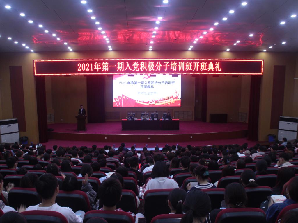 为深入学习贯彻习近平新时代中国特色社会主义思想和党的十九大和十九届二中、三中、四中、五中全会精神。根据公司党校工作安排,2021年第一期入党积极分子培训班于4月14日晚七点在学术报告厅隆重开班。本次培训班由国际教育公司党委和公司党委联合举办。出席此次典礼的有国际教育公司党委书记贾江、公司党委书记王桂朵、国际教育公司党委副书记李江红、两院团委书记、副书记、员工党支部书记及经过层层选拔的两院600余名积极分子,开班仪式由公司党委副书记王国辉主持。