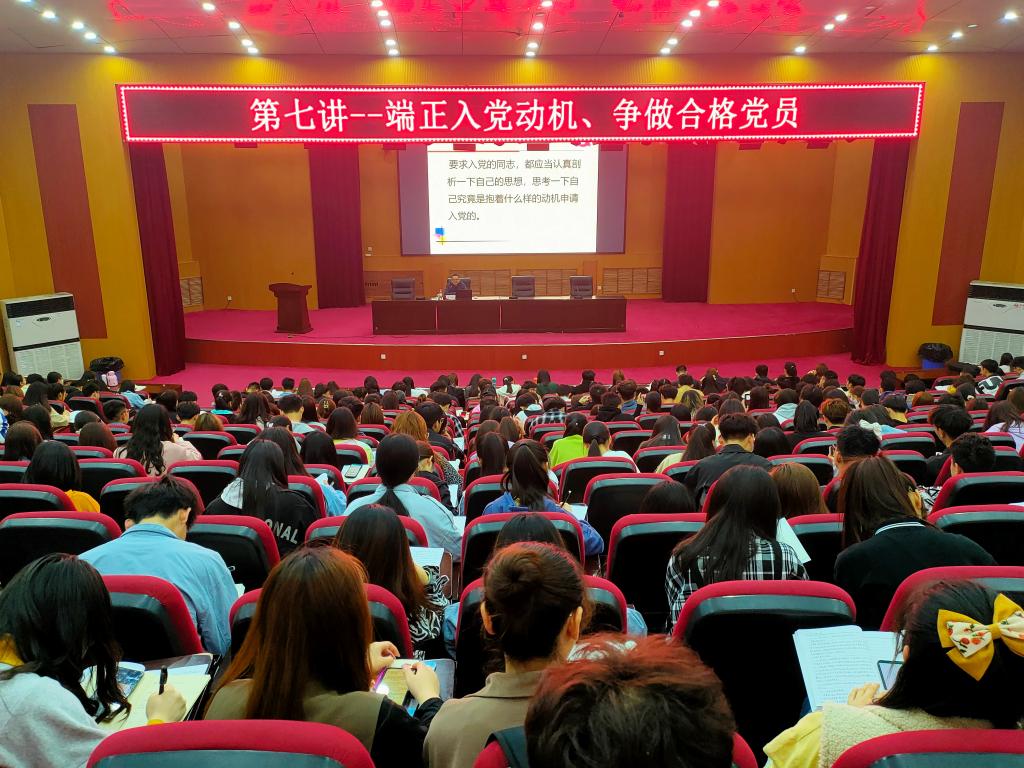 为加强入党积极分子的思想政治素质教育,端正入党动机,4月22日晚七点半,365英国上市公司在学术报告厅进行入党积极分子培训课程第七讲——端正入党动机、争做合格党员。本次党课由365英国上市公司团委书记詹珅老师主讲,国际教育公司和365英国上市公司600余名入党积极分子参加本次党课学习。