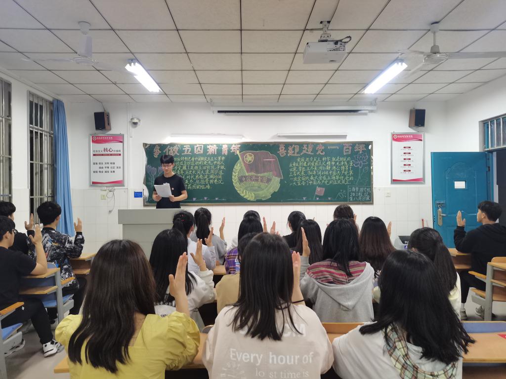 团课伊始,各班团支书带领大家重温入团誓词,迎接“五四运动”102周年纪念日。同学们通过认真学习“爱国、进步、民主、科学”的五四精神,深刻认识到作为团员青年应在新时代明使命、敢担当、有作为。之后,团支书与大家共同学习了习近平总书记在清华大学考察时的重要讲话内容,并开展课堂讨论活动,通过激烈的讨论,大家对“如何成长为肩负民族复兴历史使命的时代新人”有了深刻的理解,团员们纷纷开始有序发言,团课氛围活跃,掌声如潮。最后,各班继续开展党史系列教育,在坚定“四个自信”的同时,汲取奋斗力量,喜迎建党百年。