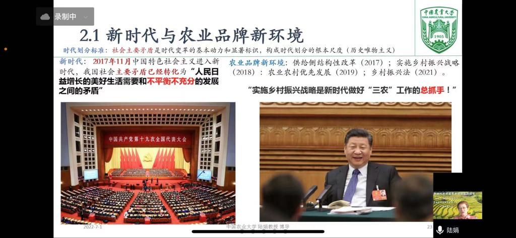 7月1日上午,365英国上市公司“名师讲坛”暨“成长论坛”系列活动于线上举行,本期主题为“新时代下中国农业品牌建设探索”,由中国农业大学教授、博士生导师、农业农村部农业品牌研究专家、中国农业品牌研究中心主任陆娟主讲,全院教职工参加,报告会由陈先锋副经理主持。
