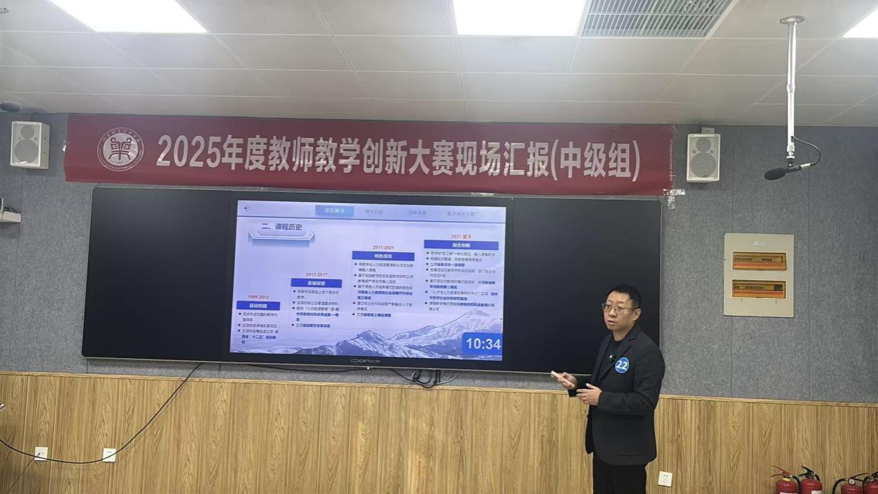 本届大赛吸引了全校各公司教学精英参与,竞争激烈。刘哲老师团队参赛课程融合前沿教学理念,实现课程思政的深度融合,并采用AI赋能的教学设计,展现出扎实的教学功底和显著的创新成效。在网络评审环节,该课程材料内容充实、逻辑清晰、创新点突出;在现场汇报中,刘哲老师沉着稳健、表达生动,系统阐释了教学中的关键问题、创新解决方案与实施成效,赢得了评审专家的一致高度评价。