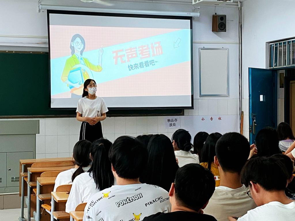会上,席老师首先带领同学们观看专升本考试警示教育片,了解《国家教育考试违规处理办法》《考生守则》等内容,向同学们讲解关于考试作弊的危害,并结合以往高校中发生的考试作弊事件及处理办法告诫同学们要严肃对待考试,结合当前疫情复杂且变化多样,形势严峻,席亚芳老师告诫同学们要积极主动配合做好核酸检测,考前14天严格执行静态管理,安心学习备考。