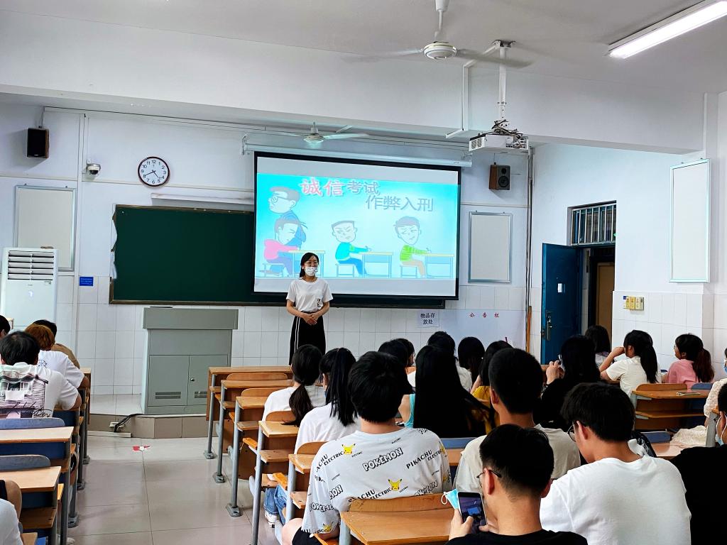 此次班会进一步增强了同学们的法律意识,加深了同学们对诚信的认识,动员同学们主动进行考试复习,诚信应考。