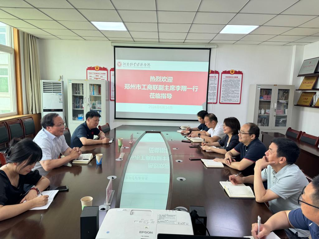 王国辉书记首先对李主席的一行表示热烈欢迎并感谢郑州市工商联一直以来对公司工作的支持和帮助,而后从历史沿革、团队队伍建设、专业建设和校企合作开展情况等方面介绍了公司的基本概况。何丽娜经理从强化应用型科研反哺教学、人才培养质量提升、成果转化及智库建设等方面谈了合作的设想,希望能够通过不同形式的合作促进双方资源共享,实现互利共赢,进一步发挥高校服务地方经济社会发展职能。李翔副主席介绍了郑州市工商联的基本概况,并围绕开展专题调研、智库建设、参政议政和提供决策咨询服务阐述了双方合作的前景,并表示希望在智库建设和服务公司毕业生就业方面提供必要的支持和服务。随后,与会人员结合校政合作、产教融合、平台打造等方面进行了深入讨论。