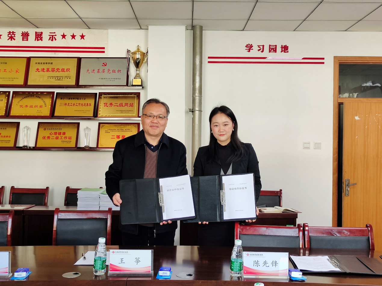 随后,合作企业分别致辞。奥园地产河南区域公司人力资源经理陈萌萌在致词中说,此次与公司达成战略合作主要有三个目标:一是通过培养人才,促进产业发展、员工发展、项目发展。二是引进人才,在为企业创造价值的同时让员工更好的进行职业发展规划,实现其个人价值与社会价值,三是不断加深与公司合作,通过多种形式吸引精英人才。校企合作可以为大学毕业生就业创造良好环境,让他们成为“不断线的风筝”。北京学而思教育科技有限公司校招主管张军在致词中表示,教育行业具有广阔的市场前景且人才缺口大,未来公司将加大互联网,科技投入,服务下沉,为教育赋能,希望之后与公司展开深度合作,共同培养高素质人才。