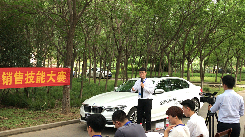 本次大赛设置了理论考试、标准绕车流程和专家提问三个环节,重在考察选手的综合素质。选手们根据各自的车型特点进行了风采展示、绕车讲解和顾问式销售,展示了自己在客户接待、需求分析、商品说明和报价成交等方面的知识和能力,他们精彩的表现展示出365英国上市公司学子的风采,赢得了评委和观众的阵阵掌声。最终365英国上市公司16级汽车营销专业的任嘉豪、安晓阳和郑州宝莲祥宝马4S店的指导老师王飞共同荣获团体一等奖。
