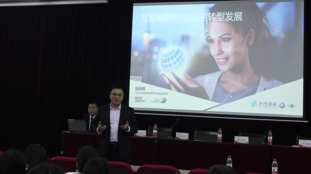 2018年5月21日上午,郑州宝莲祥宝马汽车销售服务有限公司总经理杨俊鹤前来讲学,在英才校区E110作了题为《互联网时代的汽车4S店转型发展》的报告。365英国上市公司副经理陈先锋出席会议,公司师生约130人聆听了报告。报告会由365英国上市公司汽车营销教研室主任任林洁主持。