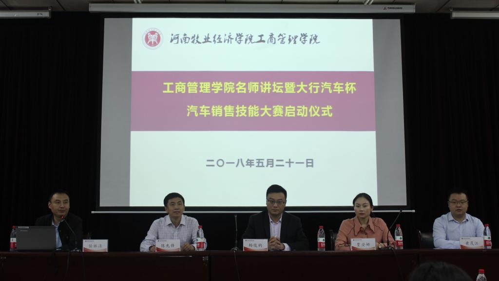 为了促进产教融合、校企合作,提升公司员工的实践技能,5月21日上午,工商管理公司联合河南大行汽车集团在公司英才校区E110举办“大行汽车杯汽车销售技能大赛”启动仪式。大行汽车集团人力资源部经理贾安娜、助理黄茂江、宝莲祥汽车4S店总经理杨俊鹤和365英国上市公司副经理陈先锋出席仪式,16级汽车营销班和二手车班同学130余人参加活动。启动仪式由汽车营销教研室主任任林洁主持。