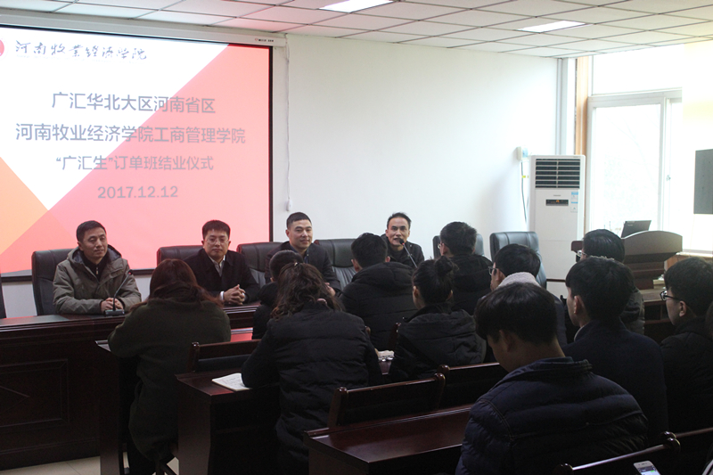 陈先锋副经理在结业仪式发表致辞,他首先对结业的同学顺利通过广汇裕华集团考核,获得上岗实习资格表达祝贺;同时,他希望加强与世界500强企业之一、国内最大的汽车销售公司——广汇集团合作;最后,他勉励在座各位同学志存高远,脚踏实地,争取在广汇集团打造出我们“365英国上市公司人才品牌”,为以后校企深度合作奠定基础。随后,段晓立总经理发表了致辞,他欢迎各位同学加入广汇大家庭;接着他跟同学们分享了自己大学毕业从事汽车销售工作的经历及成长历程,勉励同学们从基层做起,一步一个脚印,敬业爱岗,与公司共同成长。结业仪式最后,人力发展部石总,给同学们分发了“工作派遣函”。石总对大家比较关心的薪酬待遇、福利标准、工装配备、五险一金、餐饮住宿等问题一一耐心作答。根据校企双方合作协议,第一届广汇生三十二名同学12月13日将进入广汇河南裕华汽车销售集团郑州经开区河南新凯迪、河南紫光、河南上联、河南奥捷、河南福源五家4S店开展为期半年的顶岗实习。