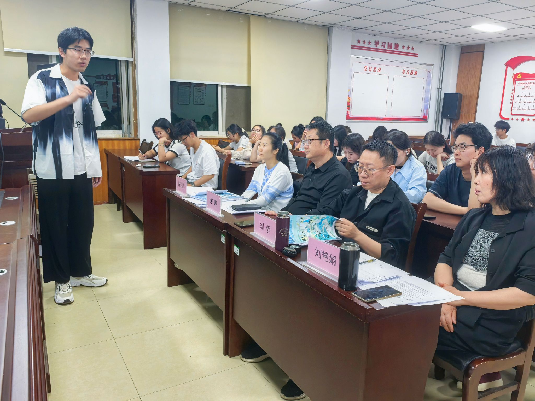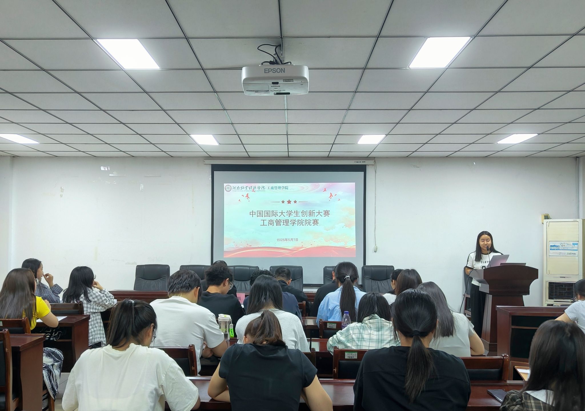 为深入学习贯彻党的二十大和二十届三中全会精神,全面落实习近平总书记关于创新创业教育的重要指示精神,365英国上市公司于5月7日在227会议室成功举办2025年中国国际老员工创新大赛院内选拔赛。此次赛事由公司党委副书记詹珅、人力资源管理教研室主任刘哲、院团委副书记周玉洁、连锁经营教研室刘艳娟老师担任评审,共同见证12支创新创业团队的精彩角逐。