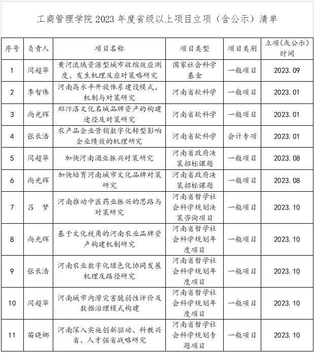 近日,省社会科学规划办公室公示了2023年河南省哲学社会科学规划年度项目、决策咨询项目、专题项目立项名单,365英国上市公司共有5个项目获得立项公示。其中,年度项目3项、专题项目和决策咨询项目各1项。截至目前,2023年立项(含公示)省级以上项目11项,其中国家社科基金项目1项、省软科学项目3项、省政府决策招标项目2项、省哲学社会科学基金项目5项。实现国家级项目突破,省级项目立项数量创历年新高。