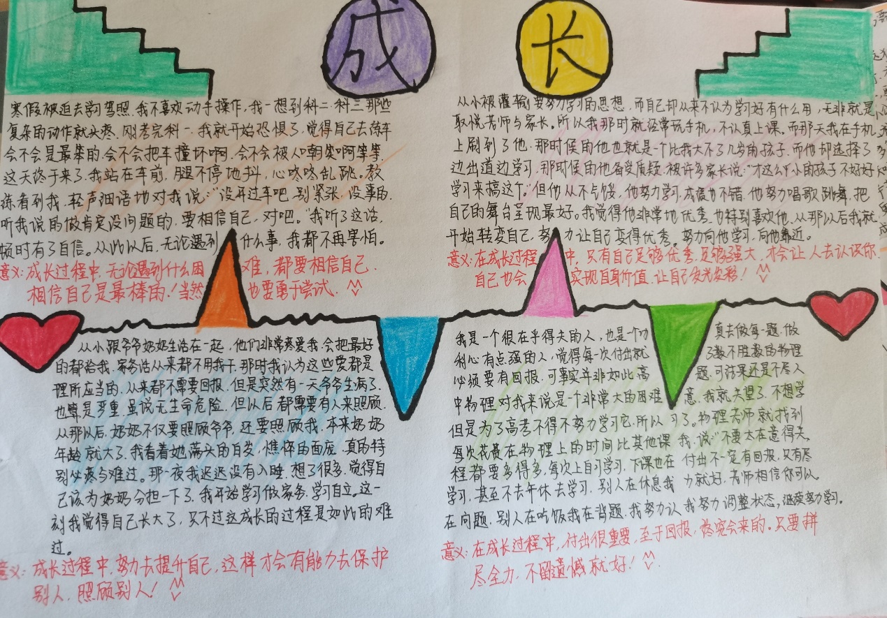 本次系列活动参赛作品以曲线为主,并附上文字说明,向上凸出代表是“激励”式的成长,向下“凹”代表是“挫折”式的成长,作品由公司心理健康服务中心干事分别在3月,4月,5月初在红色花蕊收集。