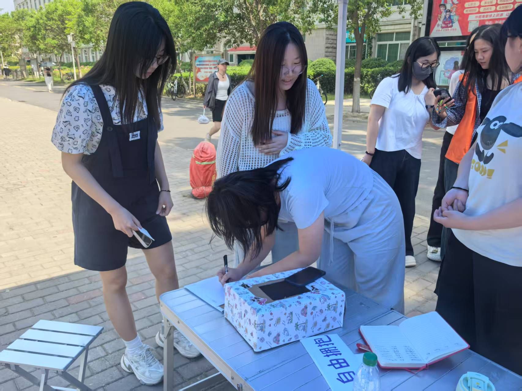 本次活动精心设置主体互动区与多元表达区两大板块,为同学们打造沉浸式情感交流空间。在主体互动区,工作人员手持醒目的“自由拥抱”互动板,鼓励同学们主动表达情感。参与员工可以自由选择拥抱对象,与工作人员或好友进行时长超过十秒的拥抱。这种简单而温暖的肢体接触,瞬间打破了人际隔阂,让同学们在无声的拥抱中,真切感受到关怀与温暖,拉近了彼此之间的距离。多元表达区的“暖心能量站”同样热闹非凡,同学们通过击掌、碰拳等非亲密接触互动,并在便签写下祝福投入盲盒,完成互动后还能抽取他人祝福,收获意外惊喜与鼓励。此次活动以非语言互动为桥梁,有效缓解了同学们的社交焦虑,增进了彼此间的信任与理解。参与者纷纷表示,在活动中感受到了温暖,也收获了积极面对学习生活的力量。