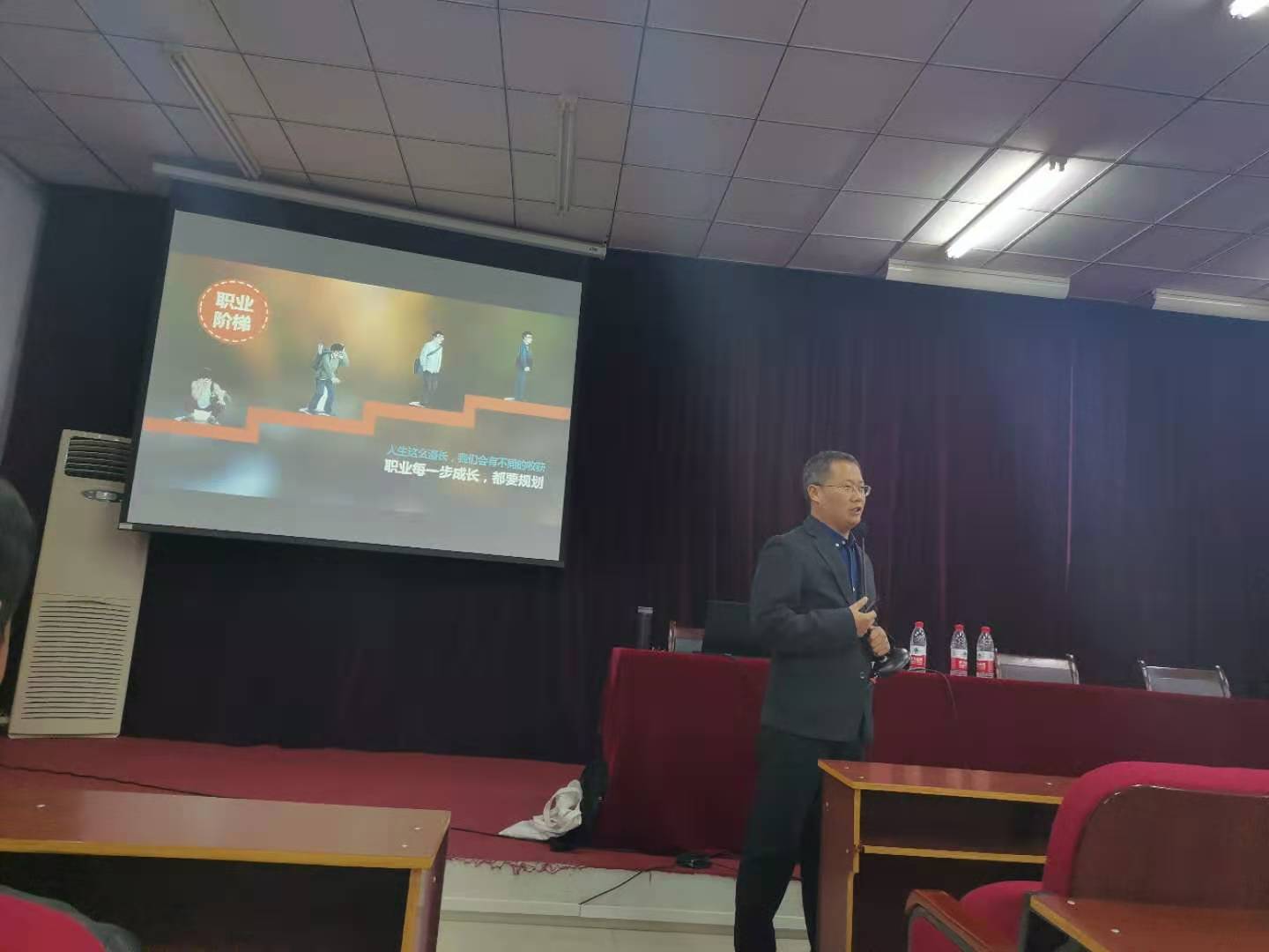 温飞经理以“毕业五年后,如何设计你的名片?”为切入点,迅速抓住了同学们的注意力。随后,温飞经理以职业曲线为例,为同学们展示了四种不同的职业发展路径,解析了职业发展各阶段的特点及注意事项,详细解读了不同职业发展路径背后的逻辑,强调了第一份工作的重要意义;详细分析了目前老员工求职就业所处的社会环境,阐述了互联网升级带来的新行业崛起以及企业人才需求的变化对于老员工求职的影响,并从正确认识职业的概念、职业的选择影响一生和专业的职业生涯规划三方面,强调正确的职业生涯规划是老员工高质量求职的关键。温飞经理结合自身职业生涯成长经历,从一个资深HR的视角,用生动的案例,为同学们讲解了职业规划目标选取的SMART原则,以及如何做好职业生涯规划、提升职业生涯竞争力的要点。讲座过程中,温飞经理不时与同学们互动,引导同学们回答和思考问题,初步描绘自身的职业目标。精彩的演讲赢得同学们的阵阵掌声。