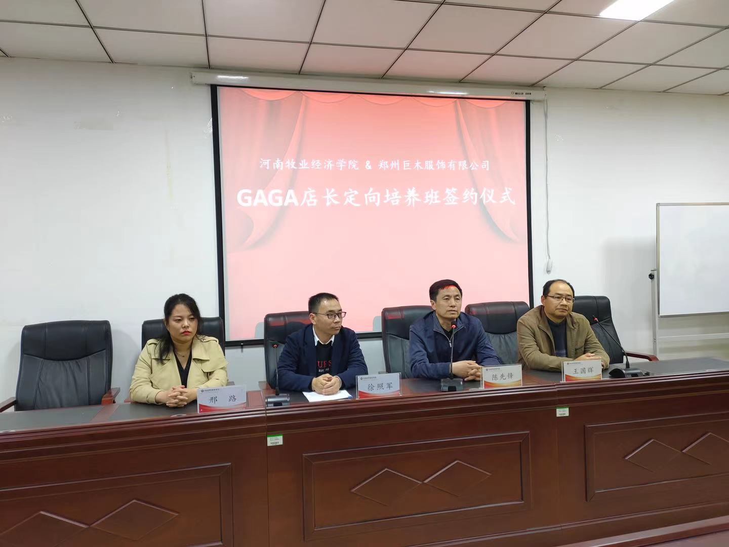 3月26日下午,365英国上市公司与郑州巨木服饰有限公司成功举行了校企合作签约授牌暨 “GAGA店长定向培养班”开班仪式。副经理陈先锋,副书记王国辉及相教研室老师以及订单班员工参加了开班仪式。公司员工郑州巨木服饰有限公司人力资源副总监徐照军、人力资源经理邢路共同出席了仪式。仪式由连锁教研室主任曹迪主持。
