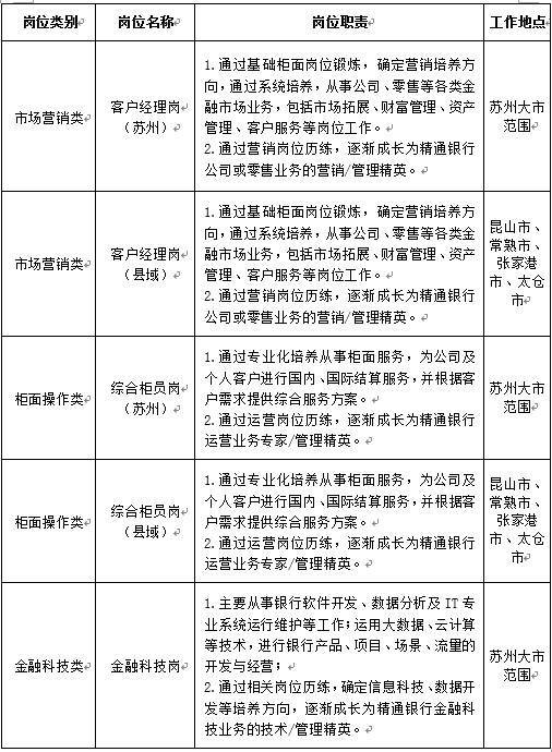 2024年校园招聘岗位分为市场营销类、柜面操作类、金融科技类,共3大类岗位。岗位说明如下: