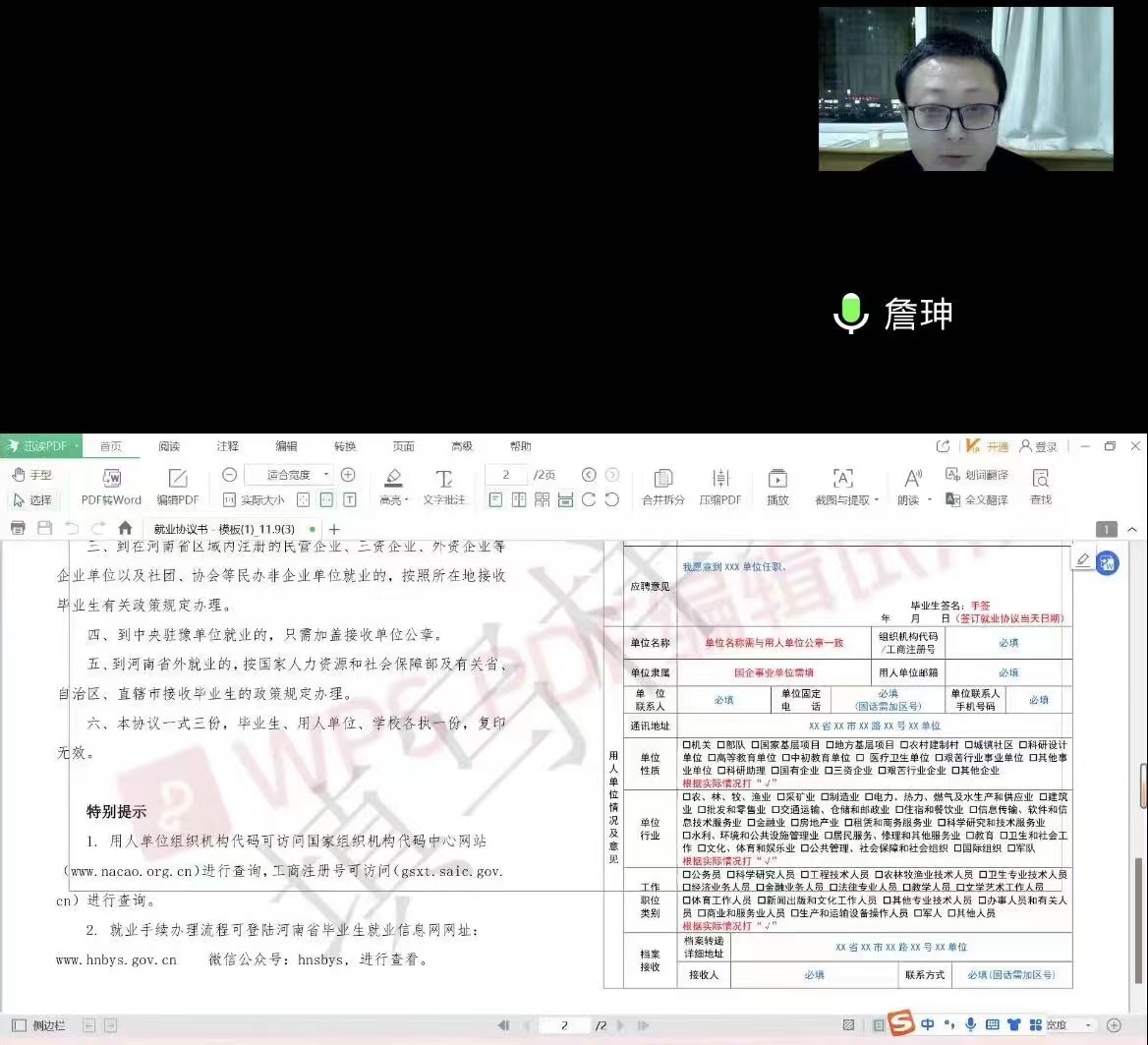党委副书记詹珅向同学们解读说明2023届毕业生就业政策与形势。以及考公、考编、三支一扶、征兵、西部计划、企业就业等相关政策,强调写好简历的重要性,而后重点说明三方协议以及劳动合同相关内容,叮嘱同学们要重点关注相关就业网站信息,抓住就业黄金期。他还特别强调了毕业实习的重要性、针对性和实效性。并提出及时关注公司发布的就业信息、参加各类校园招聘会,拓宽实习渠道,增加就业几率,积极引入企业专场招聘会和创业平台,为毕业生就业做好贴心服务,对就业困难的员工,建立工作台账,进行一对一的帮扶,提供就业指导和人才培训。