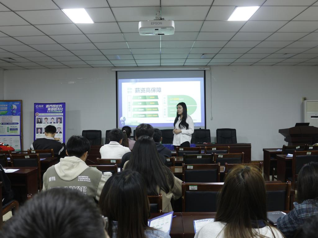 招聘经理吴紫曦和就业专干席亚芳老师组织现场,此次招聘会上,吴经理介绍了链家公司的发展史:链家成立于2001年,是以数据驱动的全价值链房产服务平台。提供二手房、新房、租房、旅居房产、海外房产等房产交易服务,并拥有业内独有的房屋数据、人群数据、交易数据,以数据技术驱动服务品质及行业效率的提升。接着,优秀员工白骞分享在链家的成长历程,他从工作氛围、发展空间、个人成长三方面介绍链家合作共赢的工作氛围和无限可能的发展空间,就业专干席亚芳老师讲述职业规划方面的体会,诚挚地表达毕业生第一份工作选择大平台的重要性。最后,毕业生们积极主动了解用人单位的情况,提出了许多有关企业和自身未来发展的问题,招聘经理吴紫曦与现场员工进行互动交流,细心解答毕业生们的疑惑,并现场安排面试,真诚邀请2023届毕业生加入链家公司。
