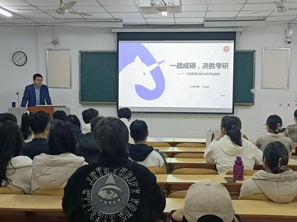 讲座伊始,刘利敏老师结合公司近年来的考研情况分享了对考研的理解与认识,向同学们详细介绍了考研备考方法,强调要夯实基础,及时做好查漏补缺,勉励同学们在考研的道路上要学会坚持,做到不惑、不忧、不惧。接着,王永斌老师为同学们剖析了当前考研形势,从考研前的准备、复习时该如何规划、如何选择院校和专业、如何平衡公司正常的学习和考研等多个角度为同学们做了详细的指导和讲解,他强调同学们报考院校的选择要从公司概况、公司排名、招生简章、招生人数与分数线等多方面进行综合考量。王老师也针对同学们提出的在网上寻找考研信息时所找到的信息过于繁杂等问题予以指导,建议同学们及时关注各大高校官网、招生简章以获取有用的信息,并鼓励同学们积极参与公司所举办的活动,加深对自己所学专业的认知与了解。最后,王老师悉心解答了同学们关于考研的疑问,结合员工的实际情况为同学们介绍如何选择公司、专业,如何准备笔试、以及后期复试中需要注意的问题,为同学们指明了奋斗目标和努力方向,坚定了同学们的考研信心。