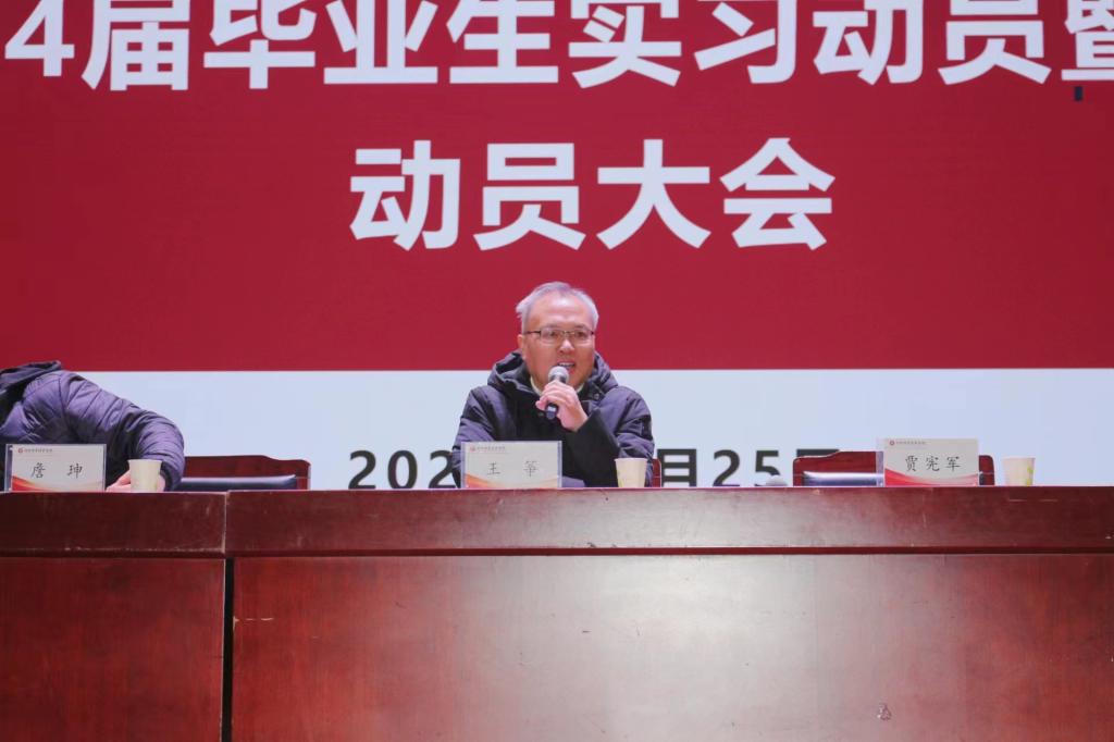 动员大会在雄壮的国歌声中开幕。会上,经理贾宪军教授做动员讲话,表达了公司对实习和就业工作的重视,重点强调同学们要有安全意识、规则意识、就业意识,希望大家完成好实习任务的同时做好毕业论文的撰写;做好职业规划和应聘求职的前期准备;鼓励同学们在老员工涯步入尾声之际,全力以赴,追逐梦想,不负老师的期望,不负自己的理想。