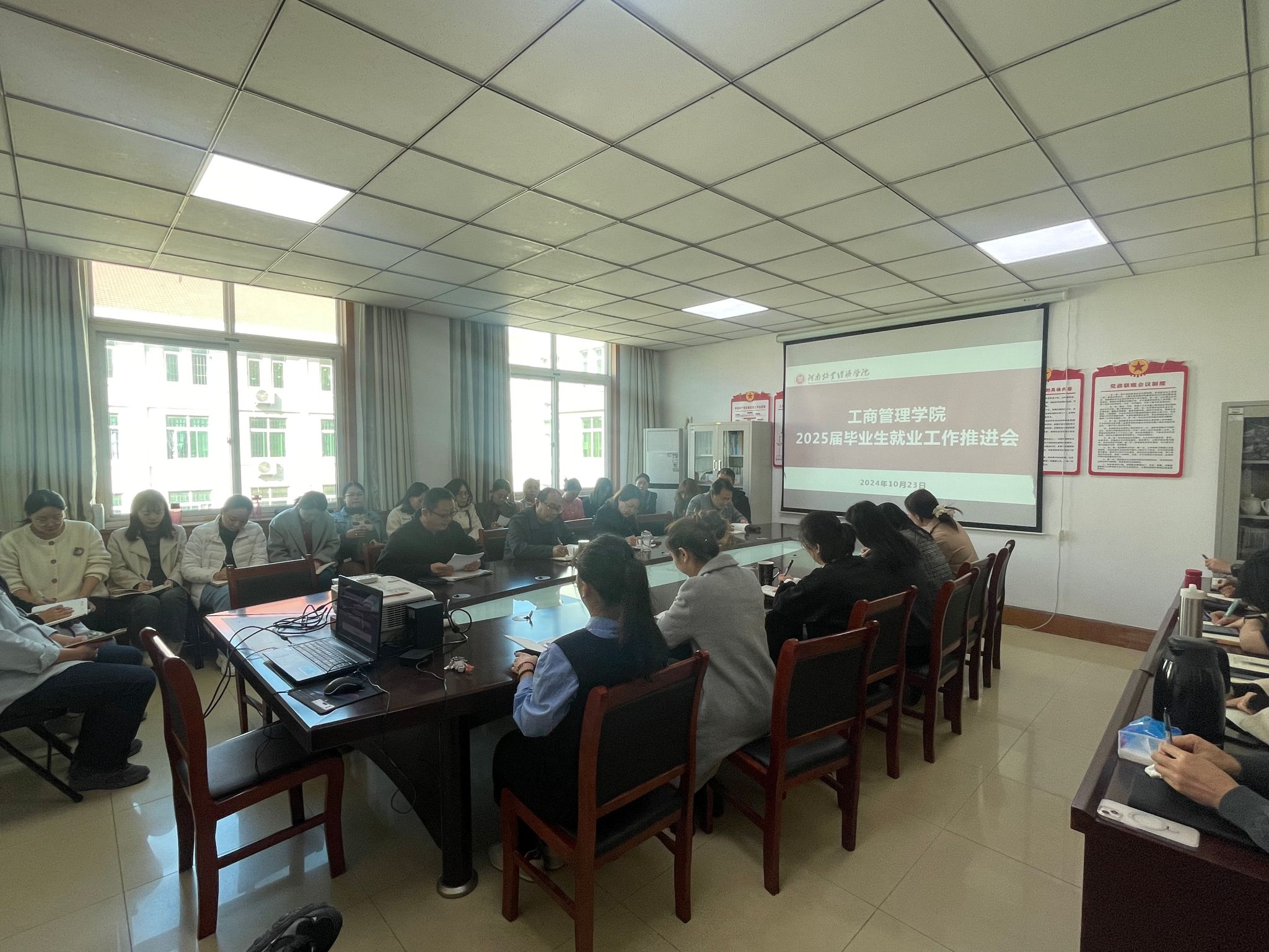 本次毕业生就业工作推进会不仅为工商公司2025届毕业生就业工作指明了方向,也进一步增强了全体教师的责任感和使命感,为公司后期2025届毕业生工作打下良好的基础。